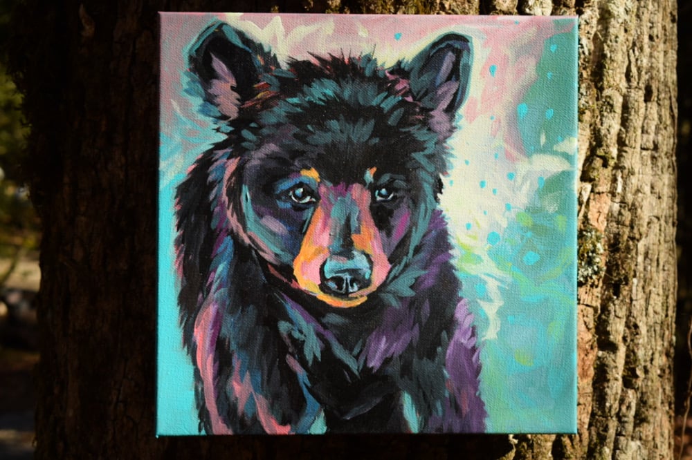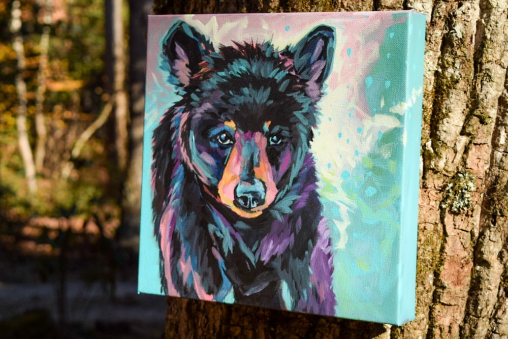 "Baby Bear" 10x10x1.5, acrylic on gallery wrapped canvas. Wrapped painted edges, signed, varnished & ready to hang.