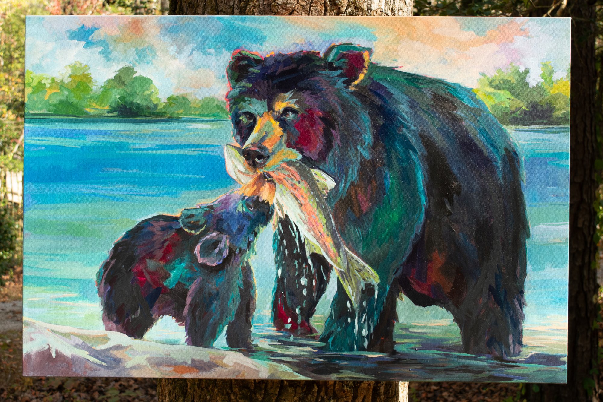 "Bear Picnic" 24x36 on 1.5" stretched canvas with wrapped painted edges.